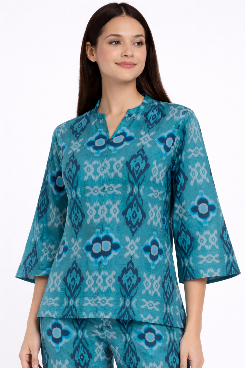 Blue Ikat Print V Neck Women's Night Suit