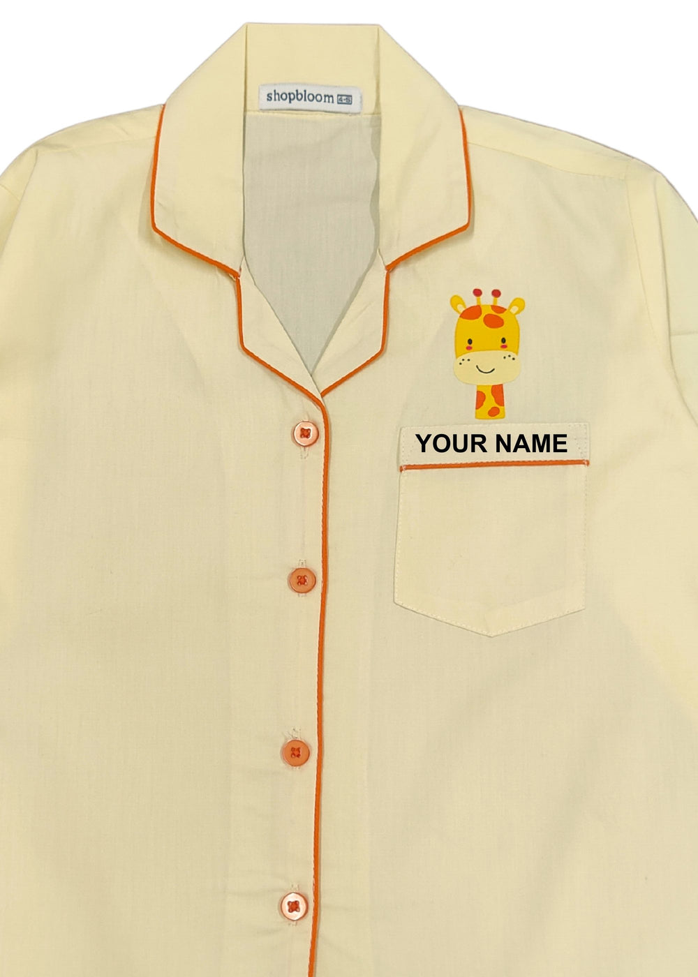 Customized Name Giraffe Long Sleeve Kids Night Suit