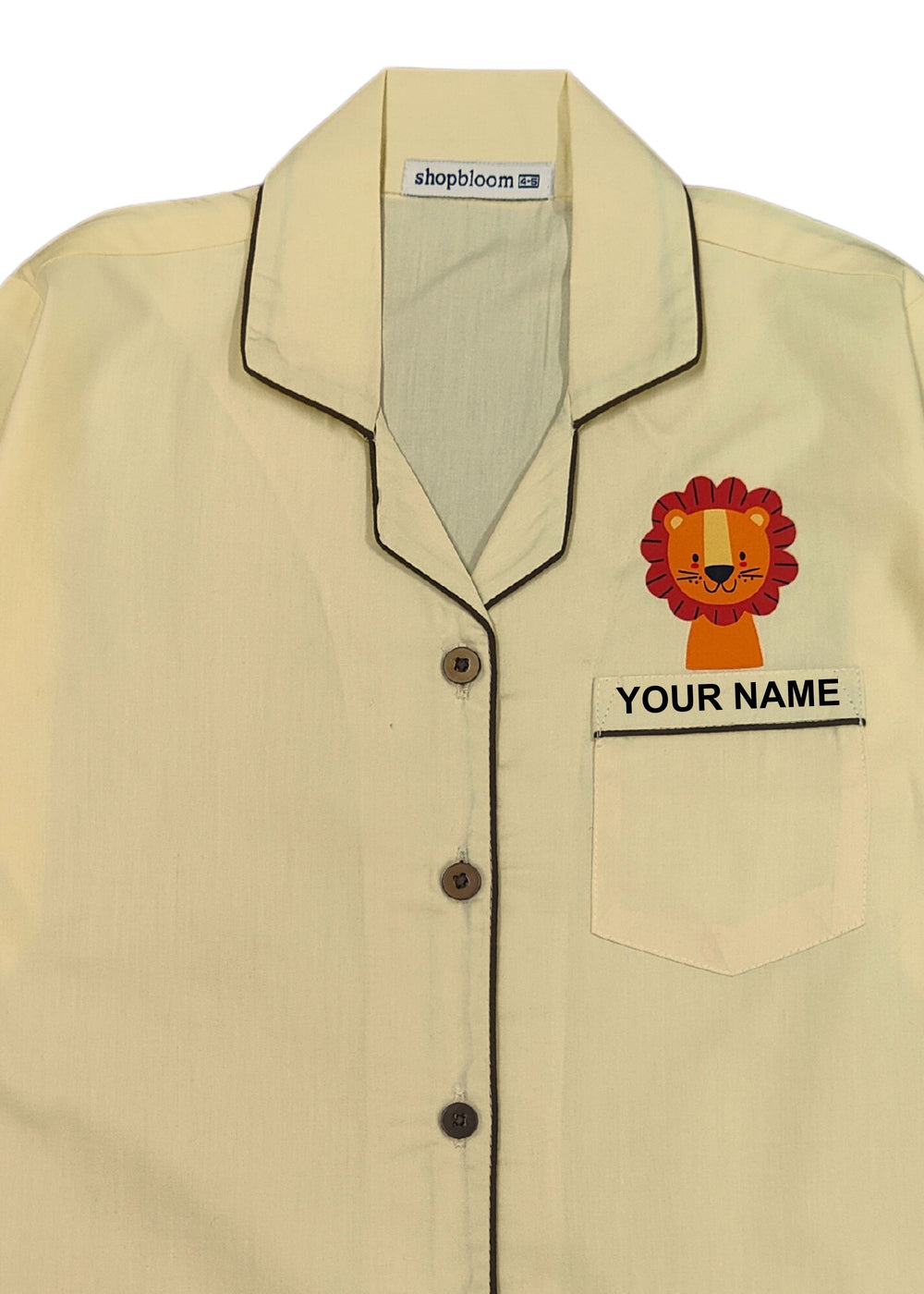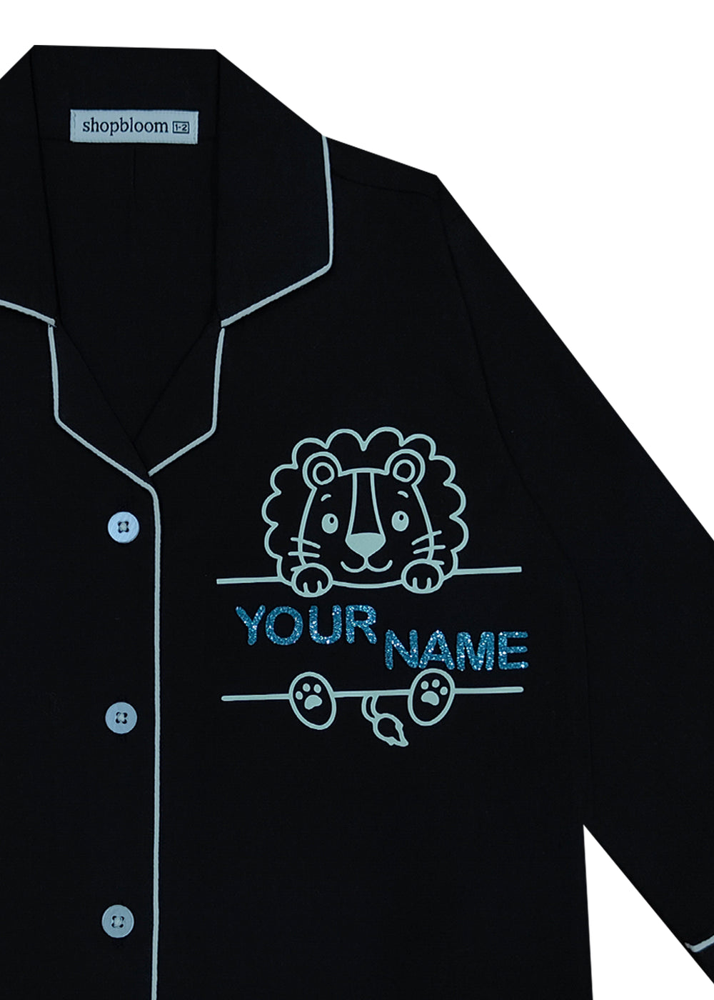 Customized Name Glow in the Dark Lion Print Long Sleeve Kids Night Suit