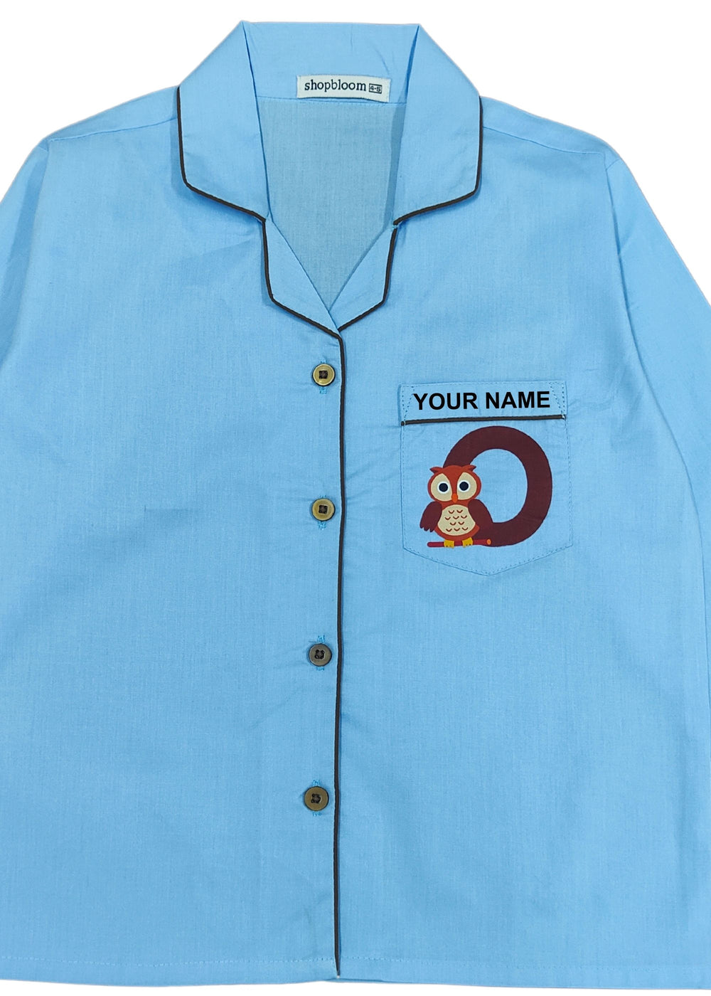 Customized Name with Alphabet Blue Long Sleeve Kids Night Suit
