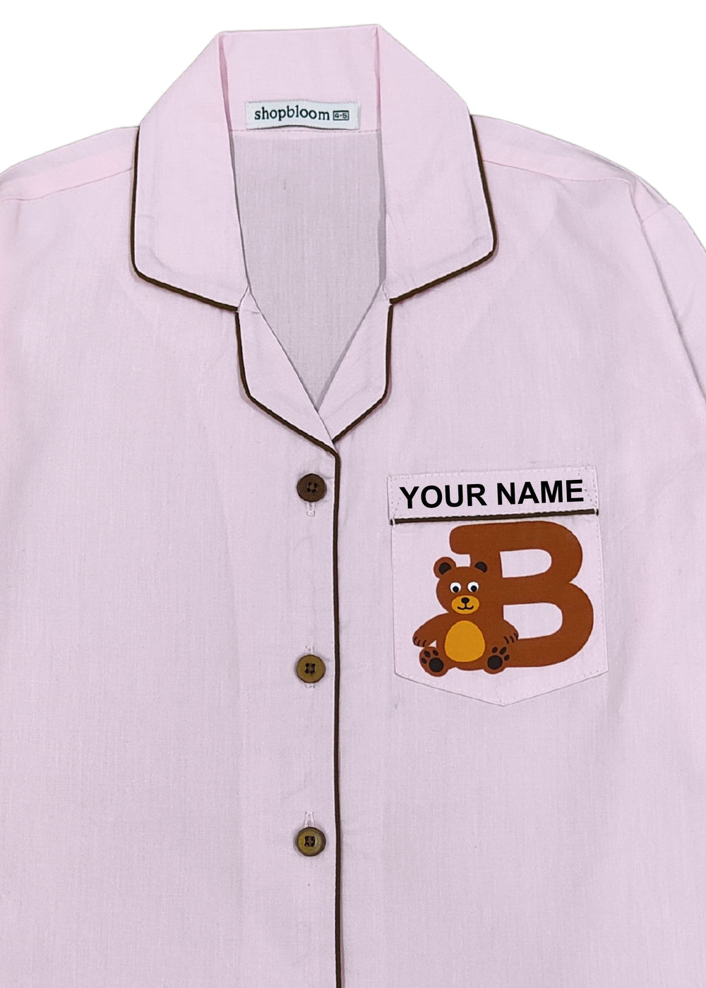 Customized Name with Alphabet Pink Long Sleeve Kids Night Suit