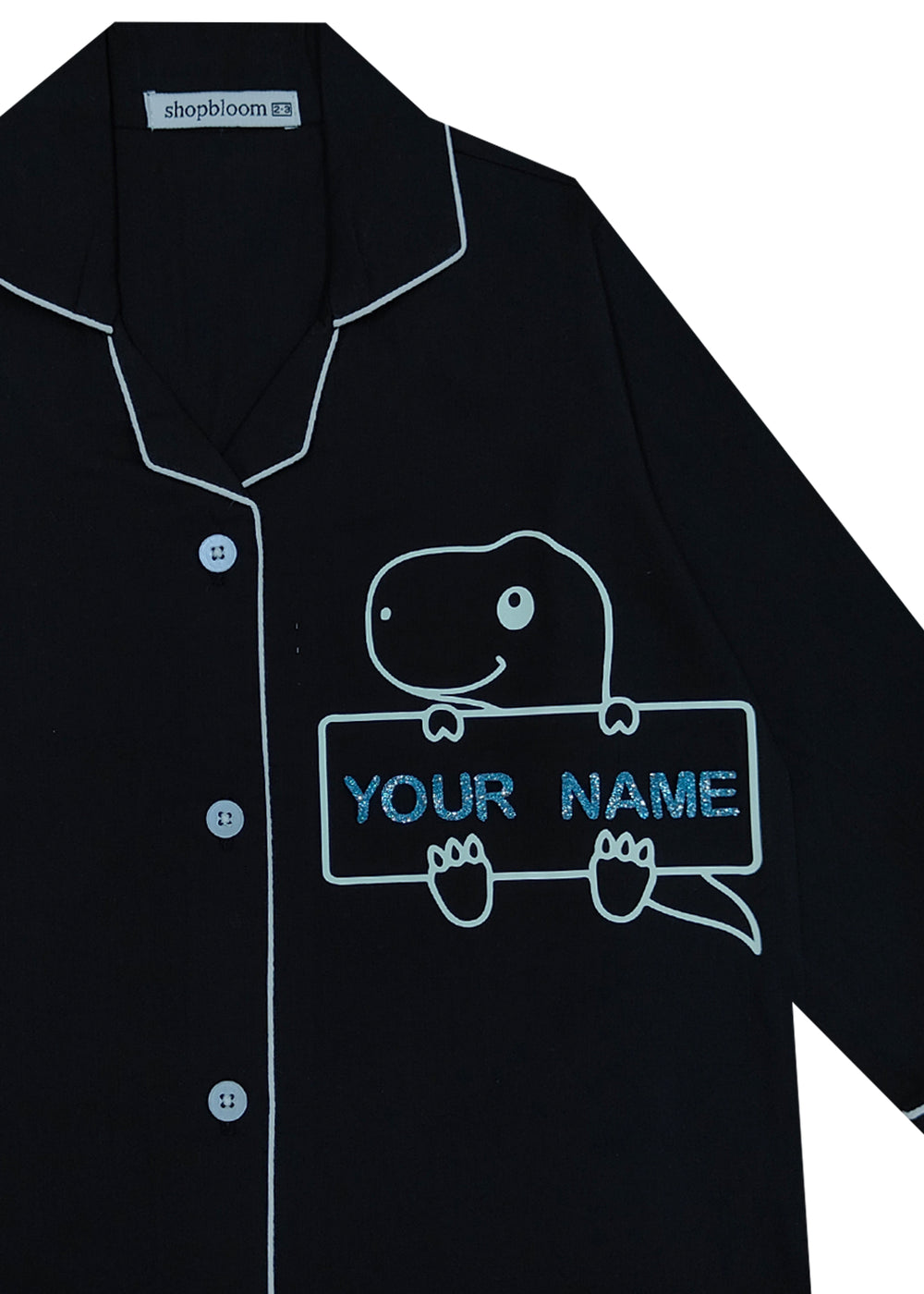 Customized Name Glow in the Dark Dino Print Long Sleeve Kids Night Suit