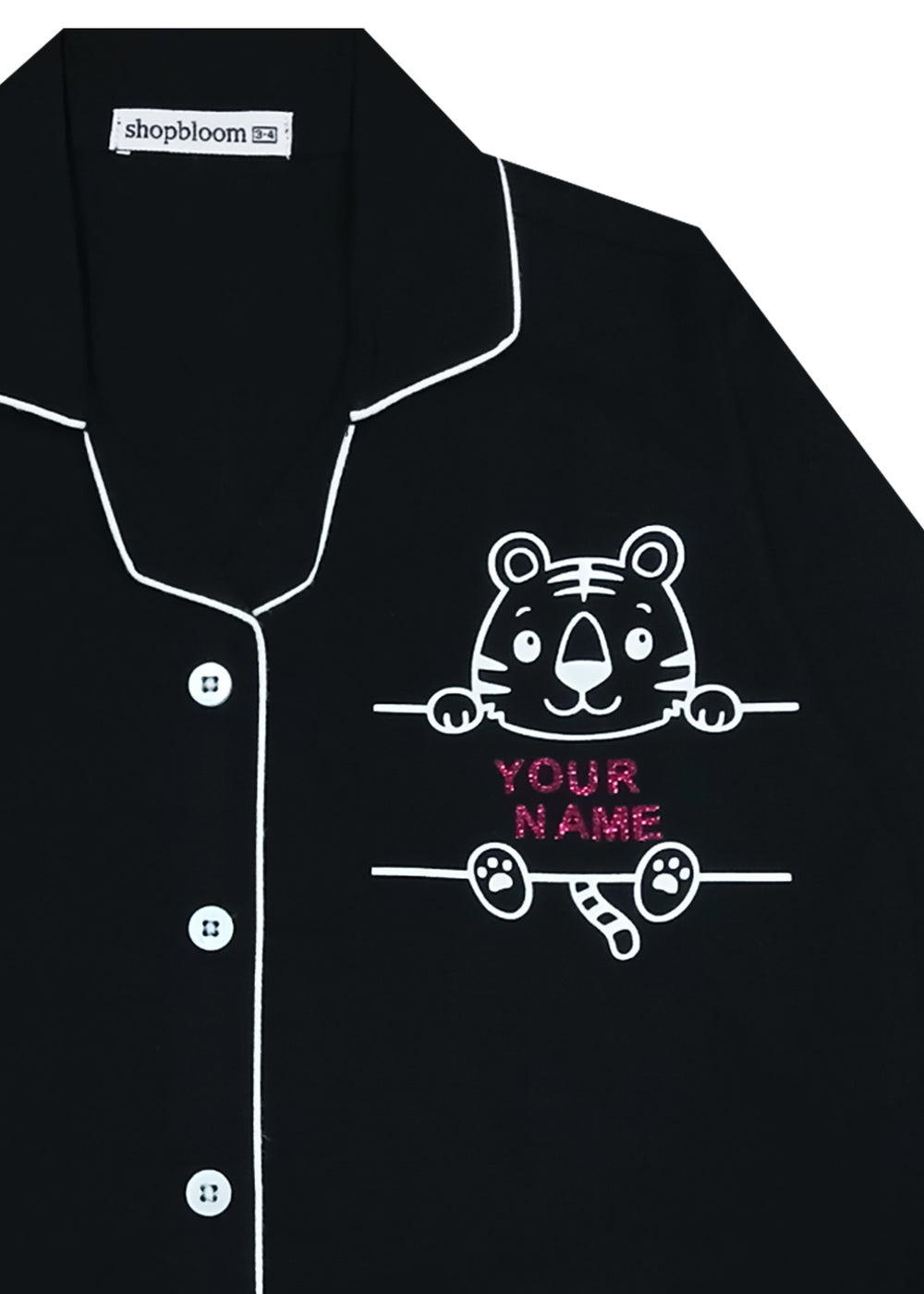 Customized Name Glow in the Dark Tiger Print Long Sleeve Kids Night Suit