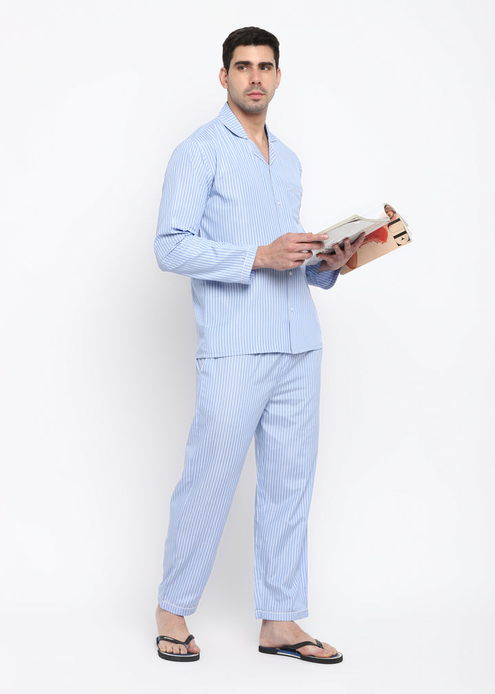 Bold and Thin Stripes Long Sleeve Men's Night Suit