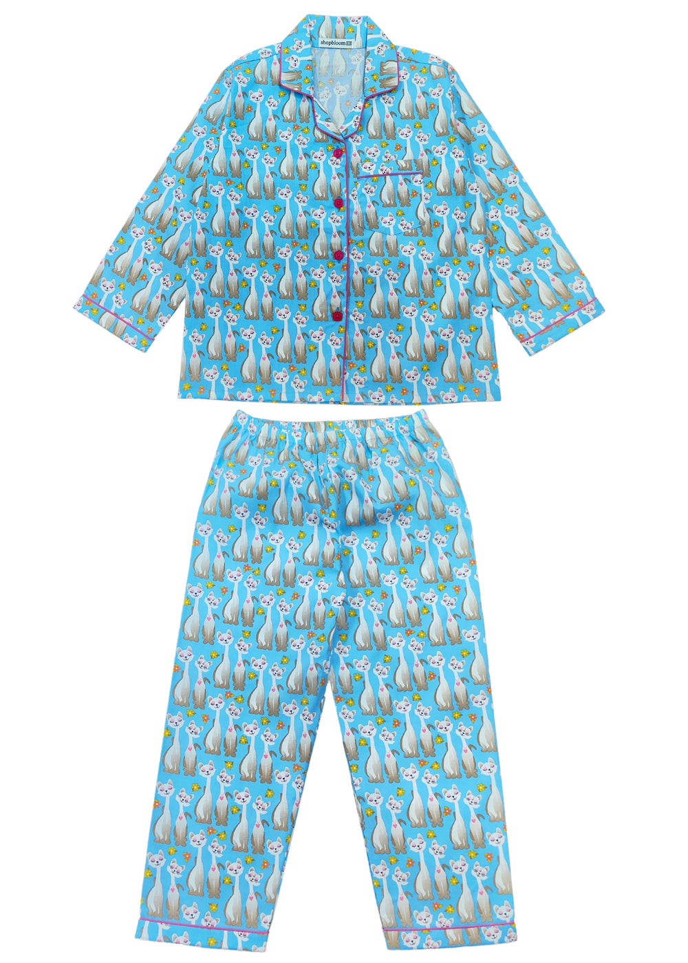 Whisker Wonderland Print Long Sleeve Kids Night Suit