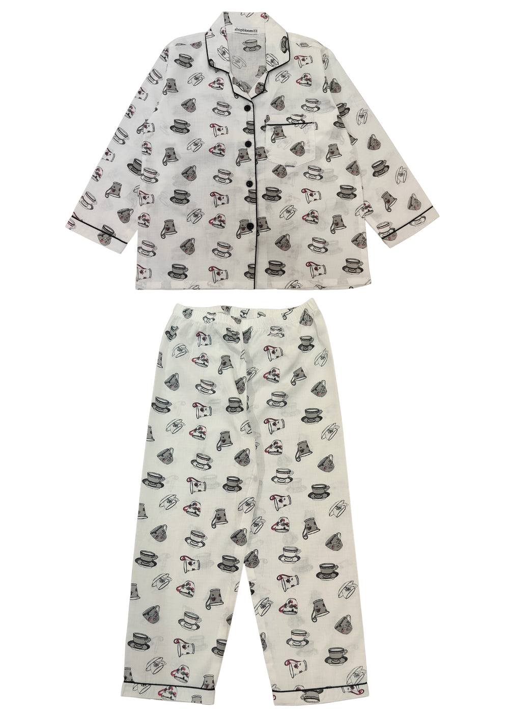 Coffee Cup Print Long Sleeve Kids Night Suit