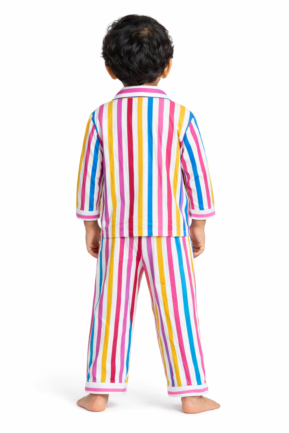 Candy Stripes Print Long Sleeve Kids Night Suit