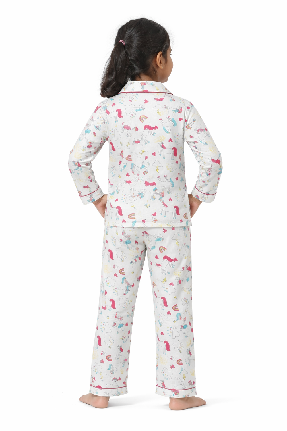 Blue Unicorn Print Long Sleeve Kids Night Suit