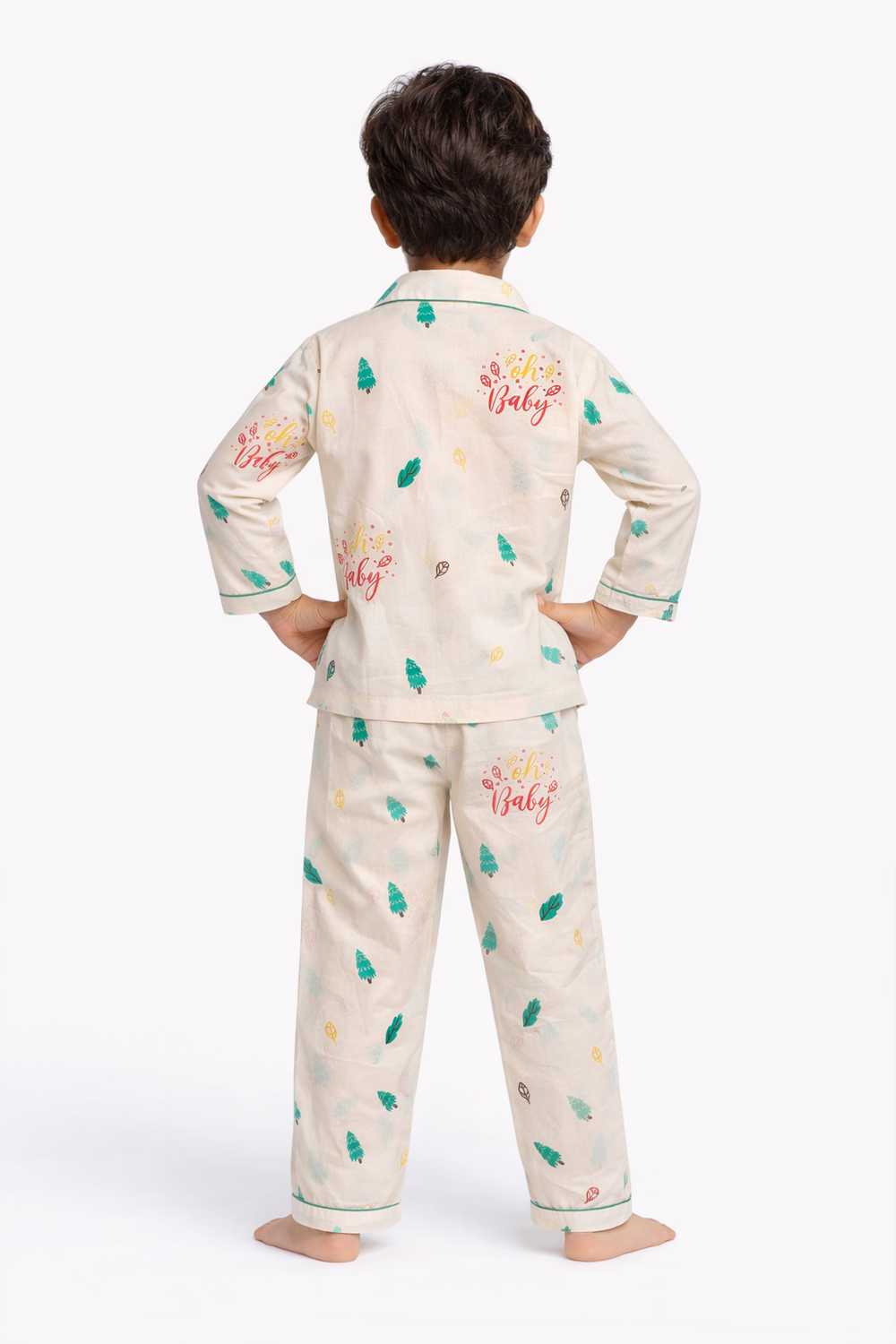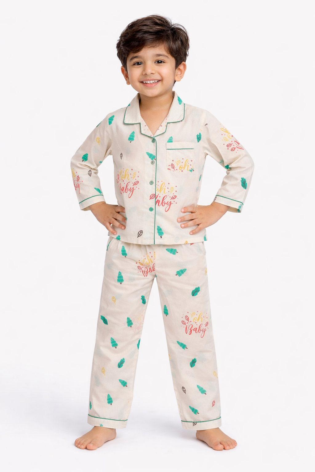 Totally Adorable Print Long Sleeve Kids Night Suit
