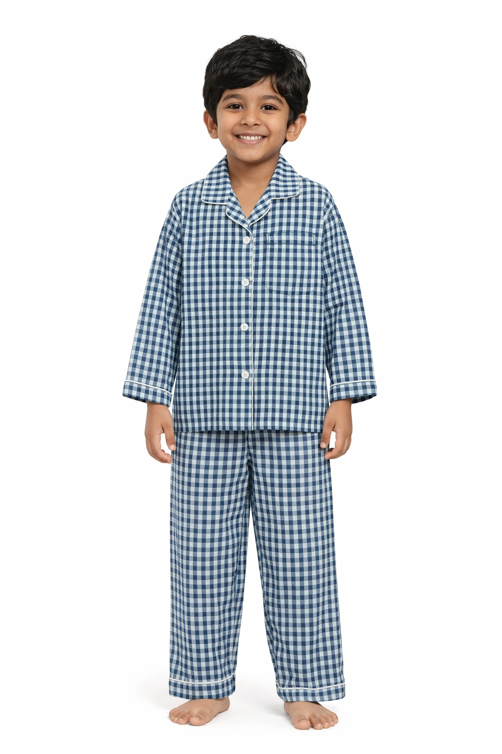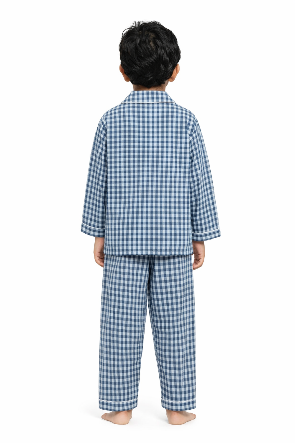 Light Blue and Black Checkered Long Sleeve Men's Night Suit