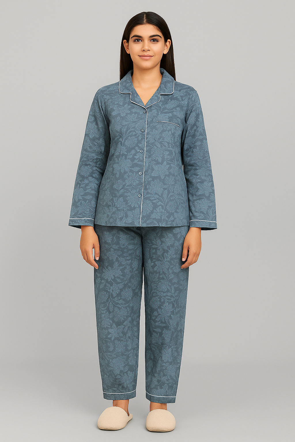Winter Wonderland Print Cotton Flannel Long Sleeve Women's Night Suit