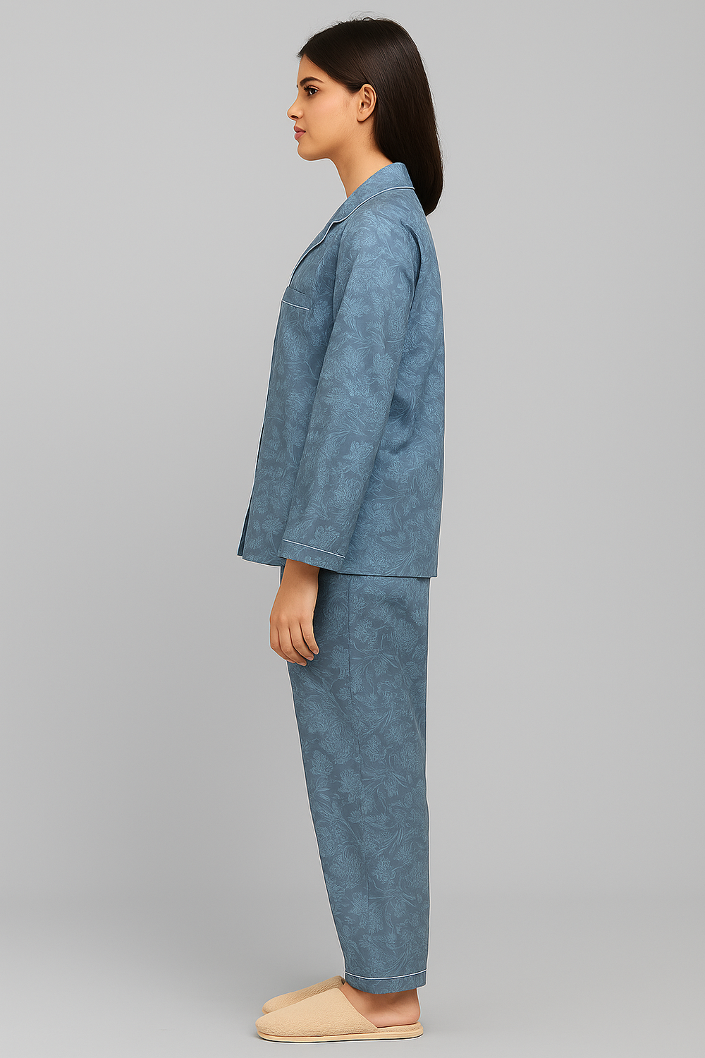 Blue Paisley Print V Neck 3/4th Sleeve Women's Night suit