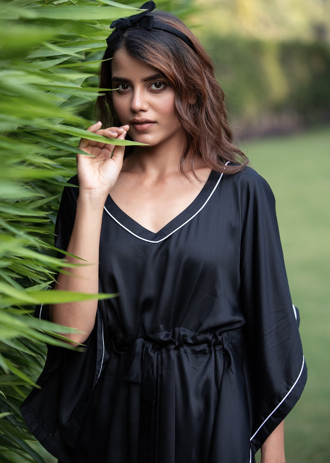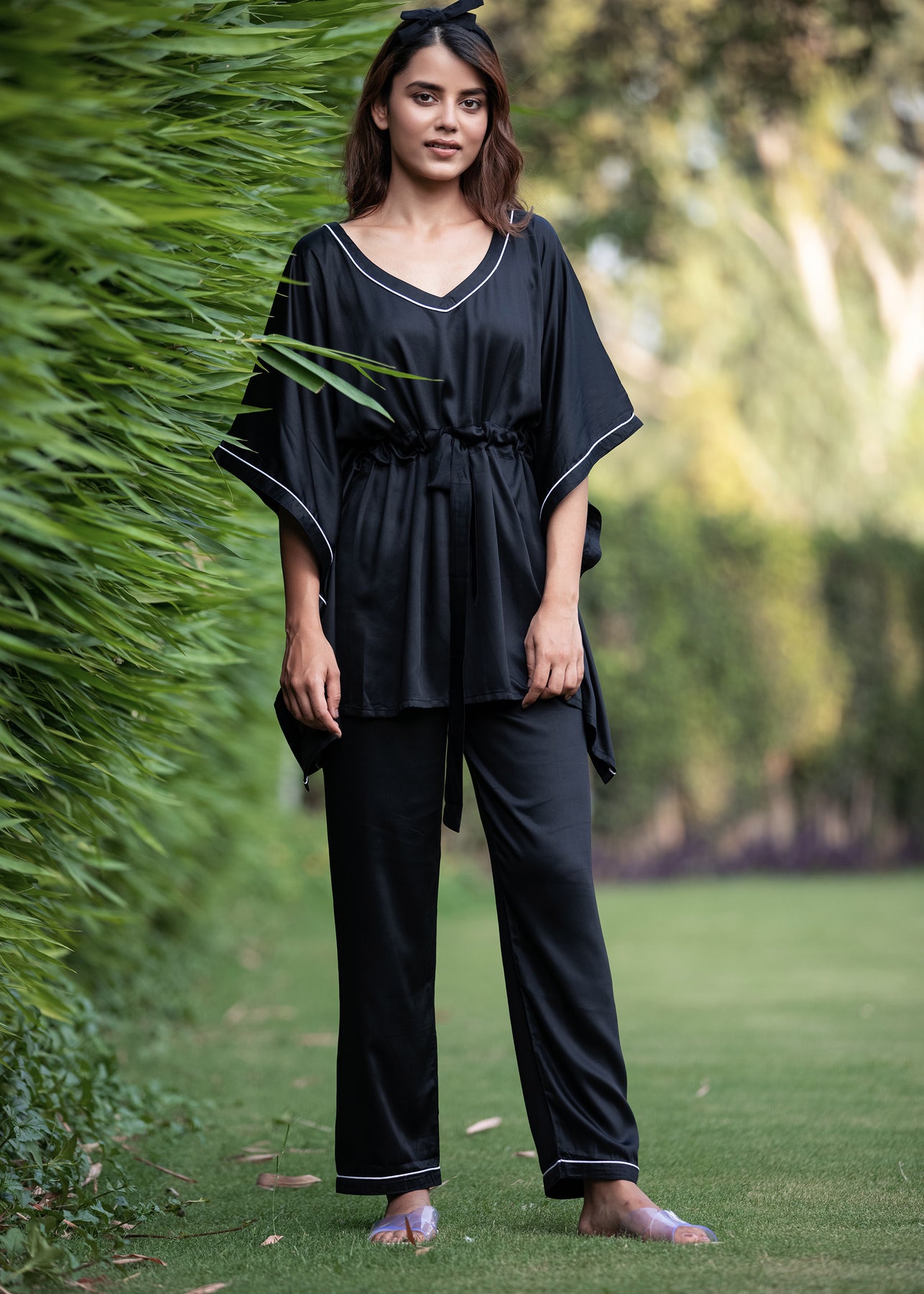Ultra Soft Black Modal Satin Women's Kaftan Night Suit