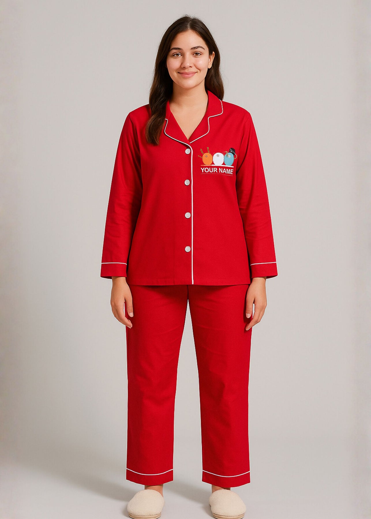 Women's Customized Name Holly Jolly Print Long Sleeve Night Suit