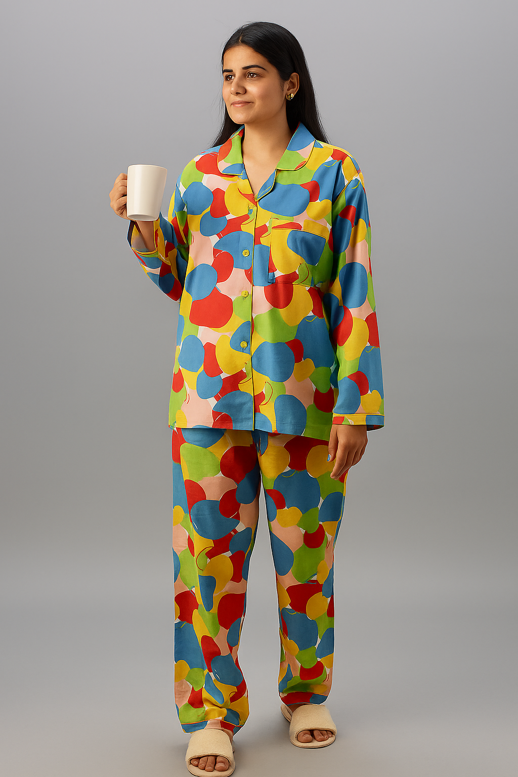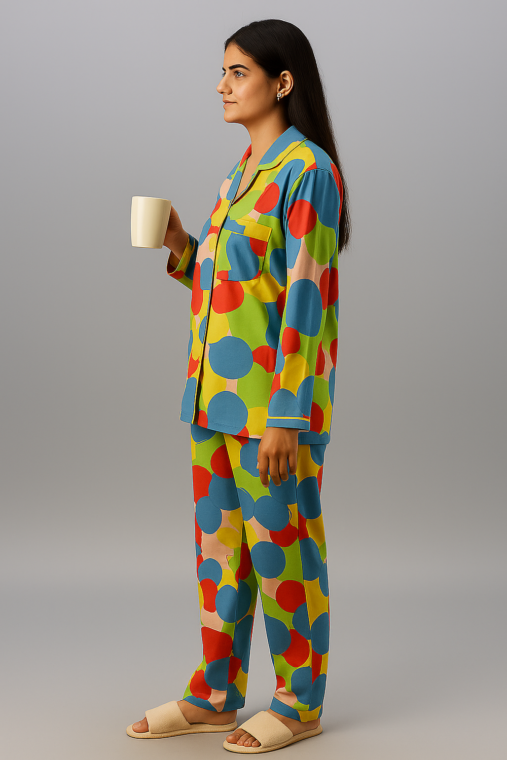 Colorful Polka Dot Print Long Sleeve Women's Night Suit