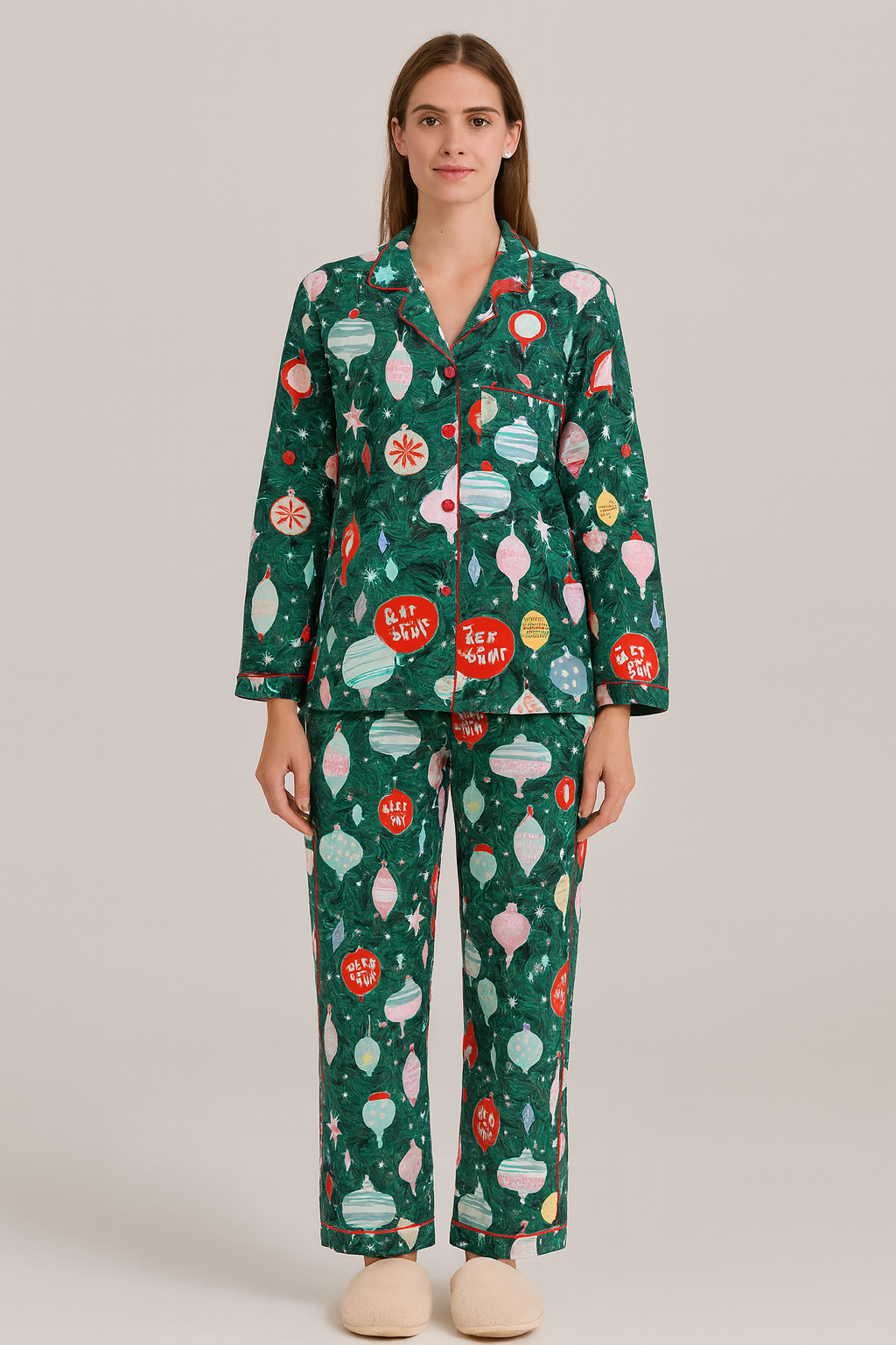Christmas Comfort Cotton Flannel Long Sleeve Women's Night Suit
