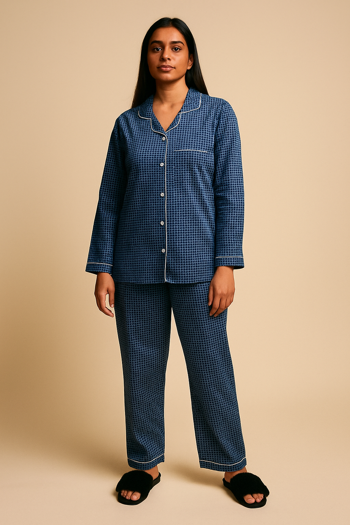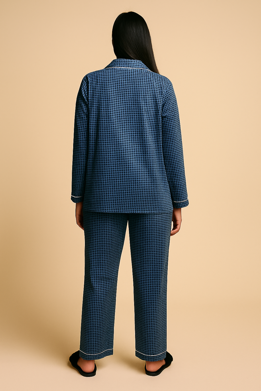 Blue Geometric Print Long Sleeve Women's Night Suit