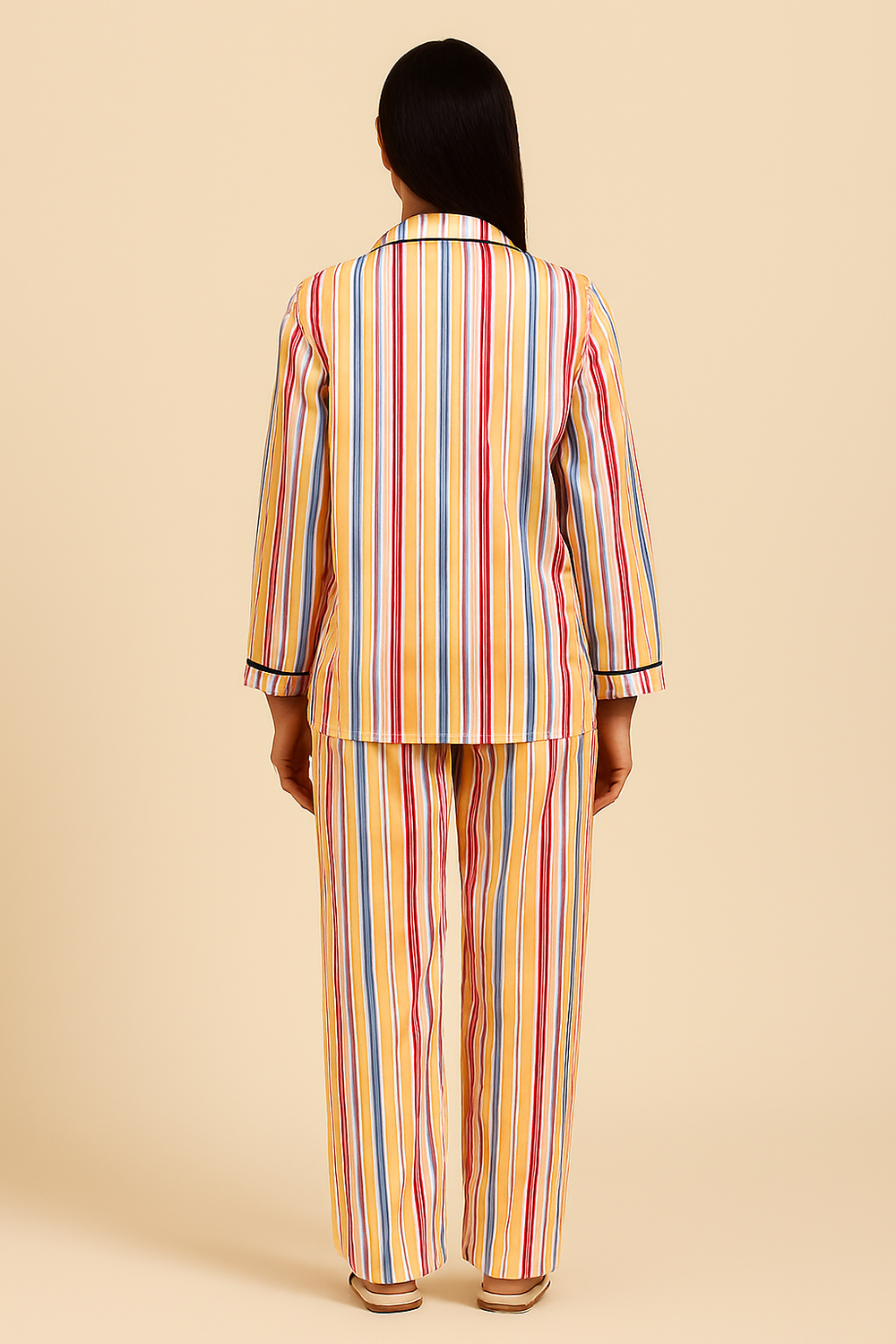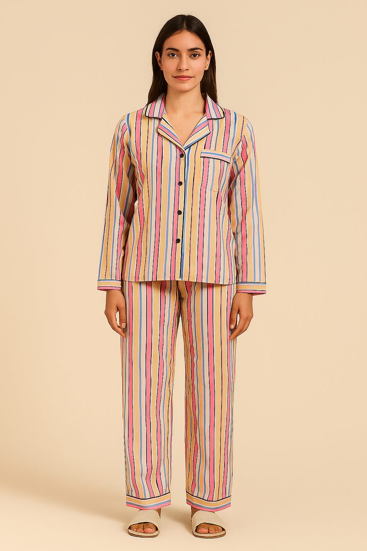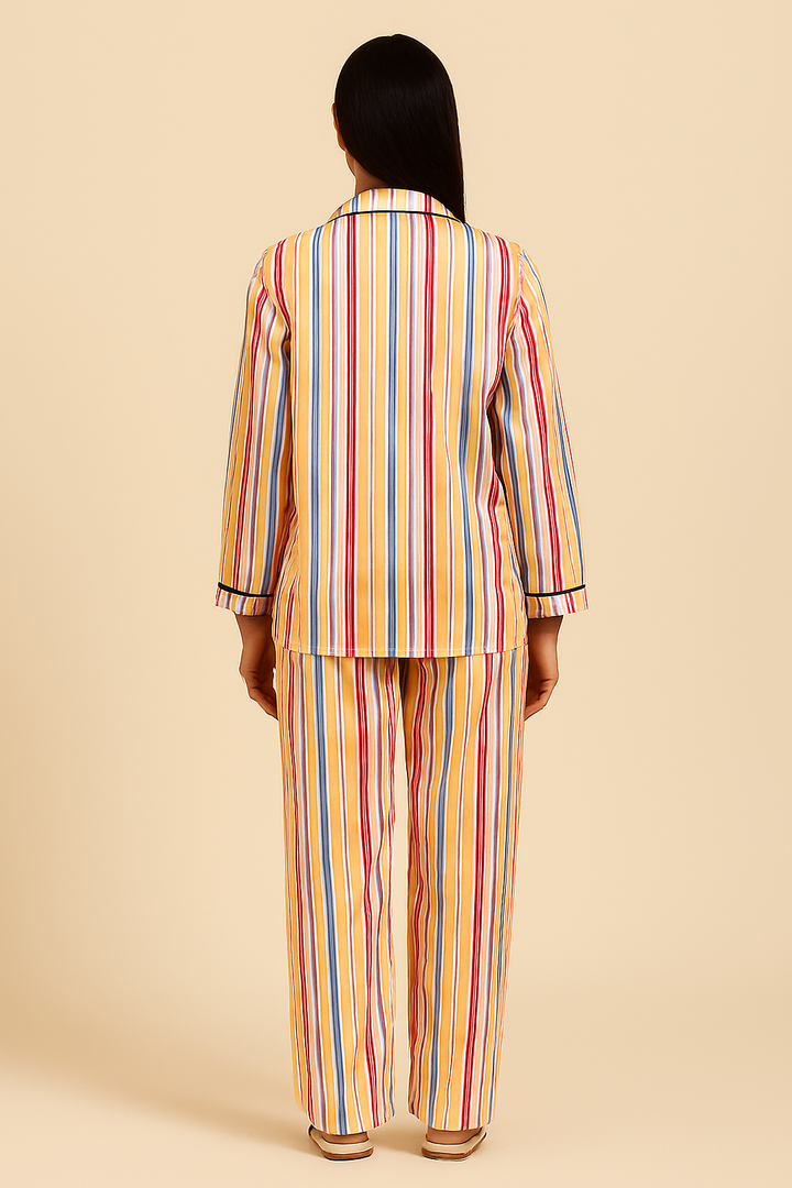 Multicolored Stripe Print Long Sleeve Women's Night Suit
