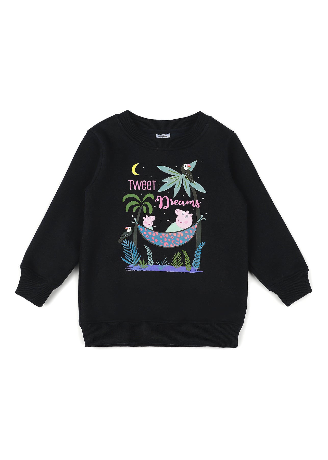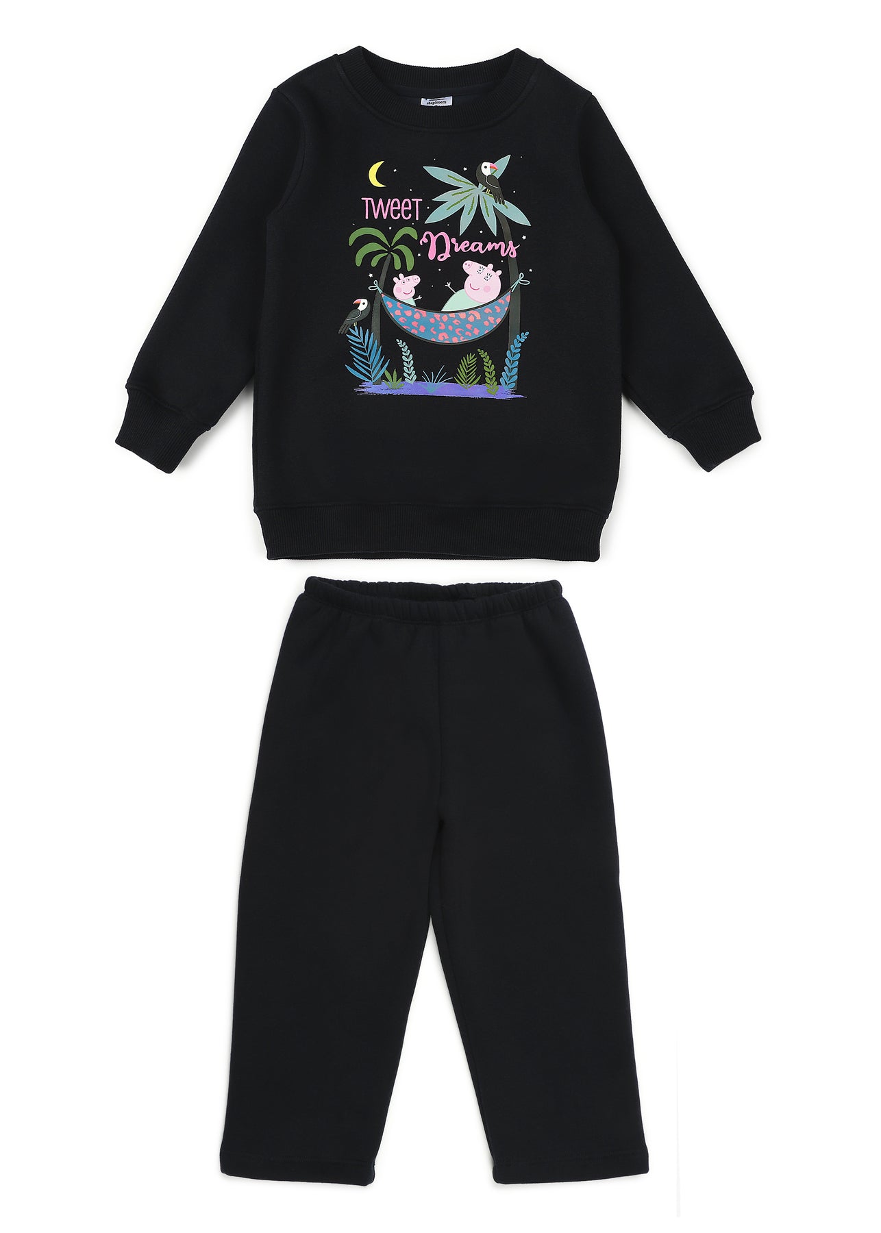 Peppa Pig Tweet Dreams Black Print Cotton Fleece Kids Sweatshirt Set - Shopbloom