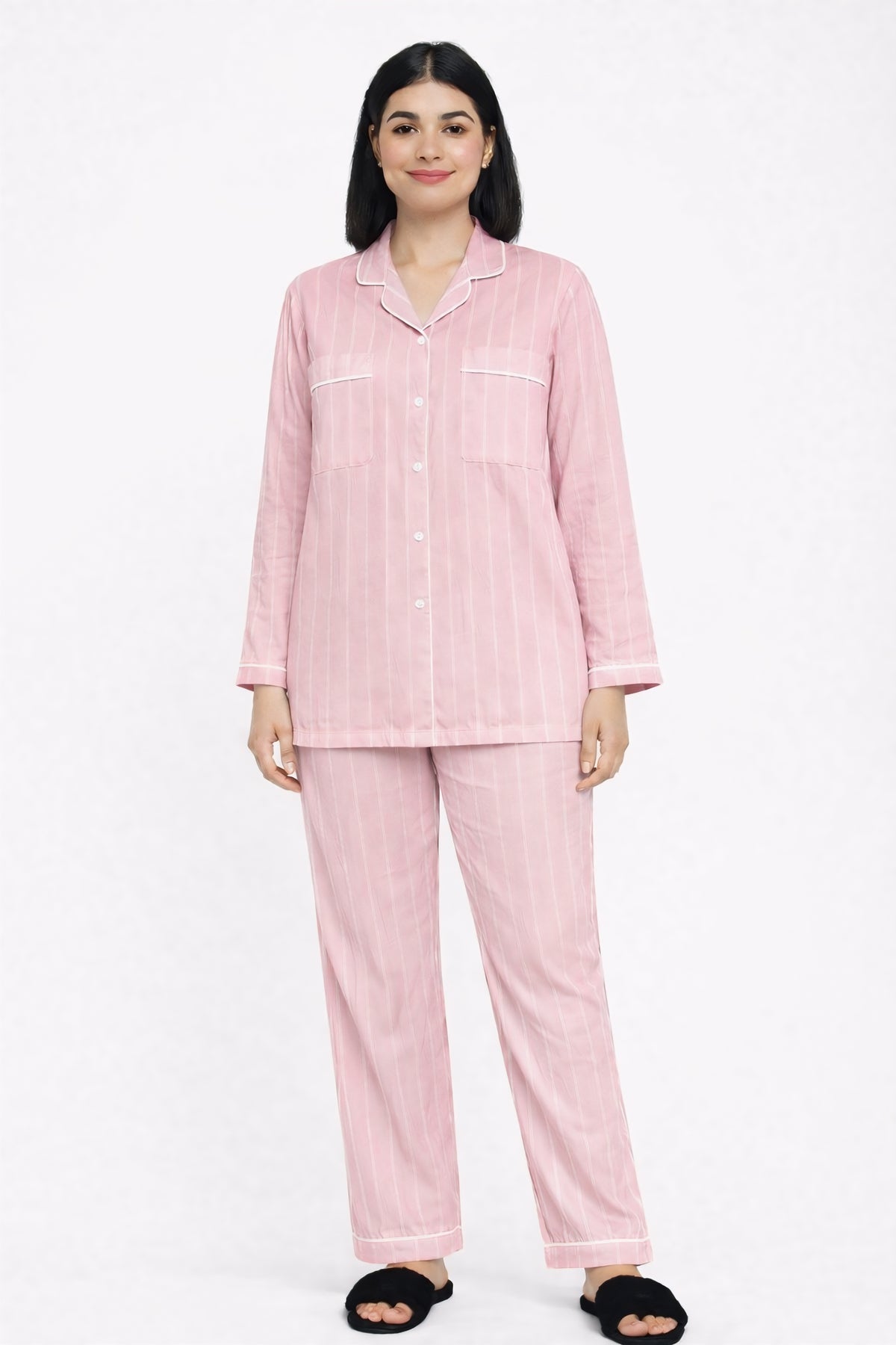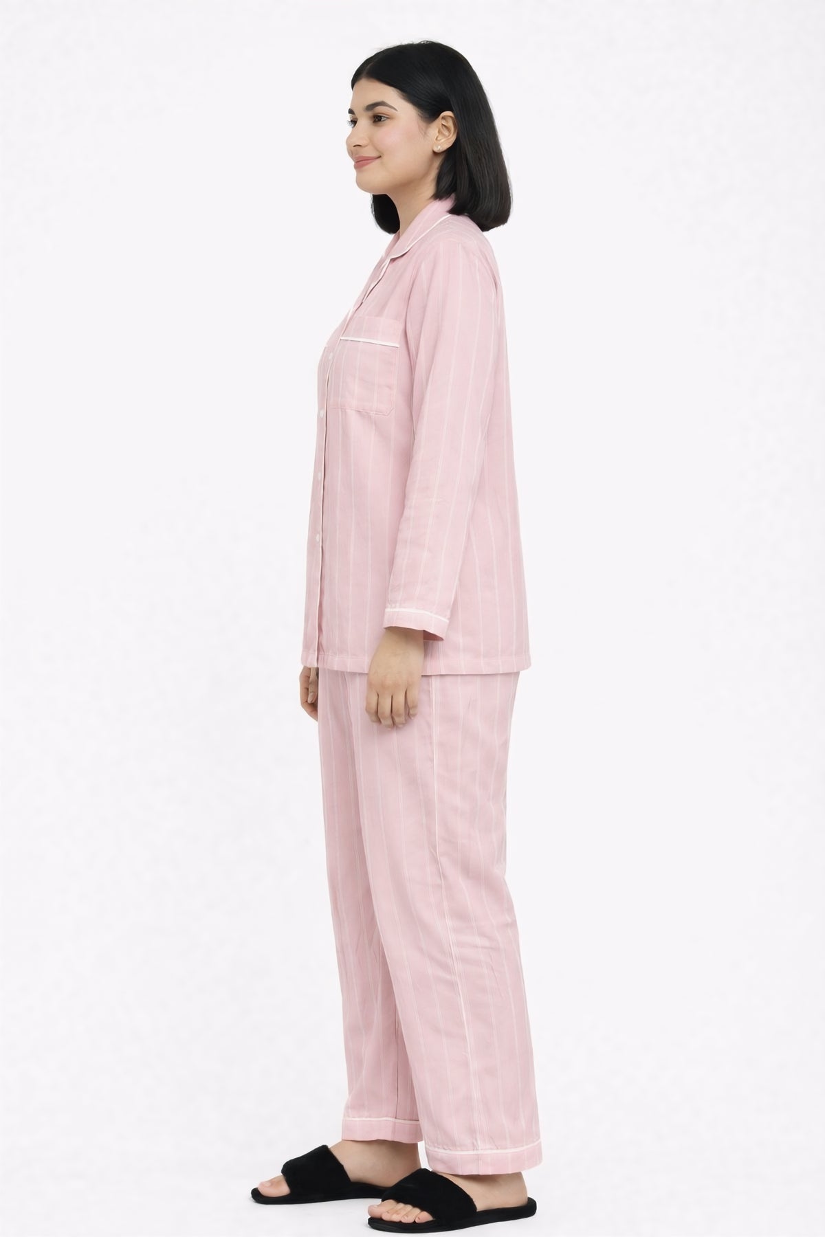 Pretty Stripe Print Long Sleeve Women's Night Suit