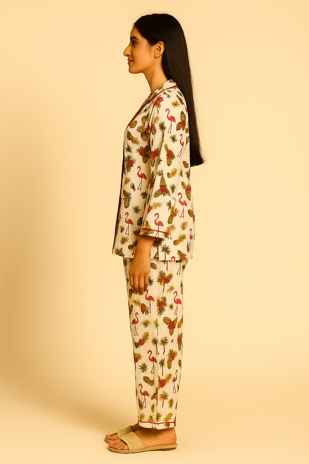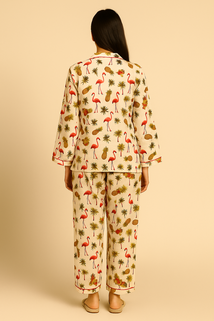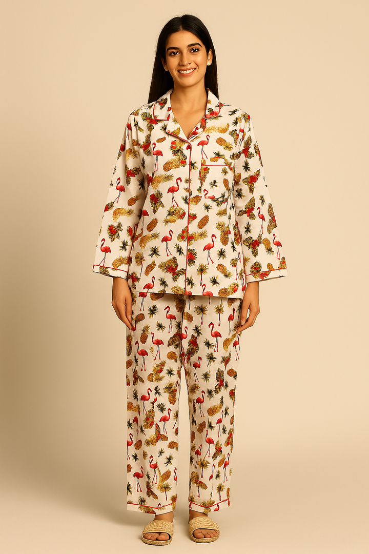 Tropical Snooze Print Long Sleeve Women's Night Suit